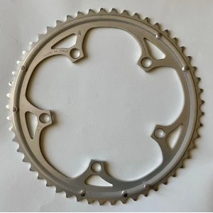 - Caractéristiques : Compatible avec les pédaliers double Campagnolo 5 Branches en entraxe de 135mm / Position : Extérieur / denture : 53 dents (à jumeler avec un 39 dents) / pour chaine 9 vitesses / Matière : Aluminium / Couleur : Argent / made in Italy