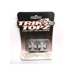 2 Bouchons De Valve TRIK TOPZ Croix De Fer Caps Shrader Argent